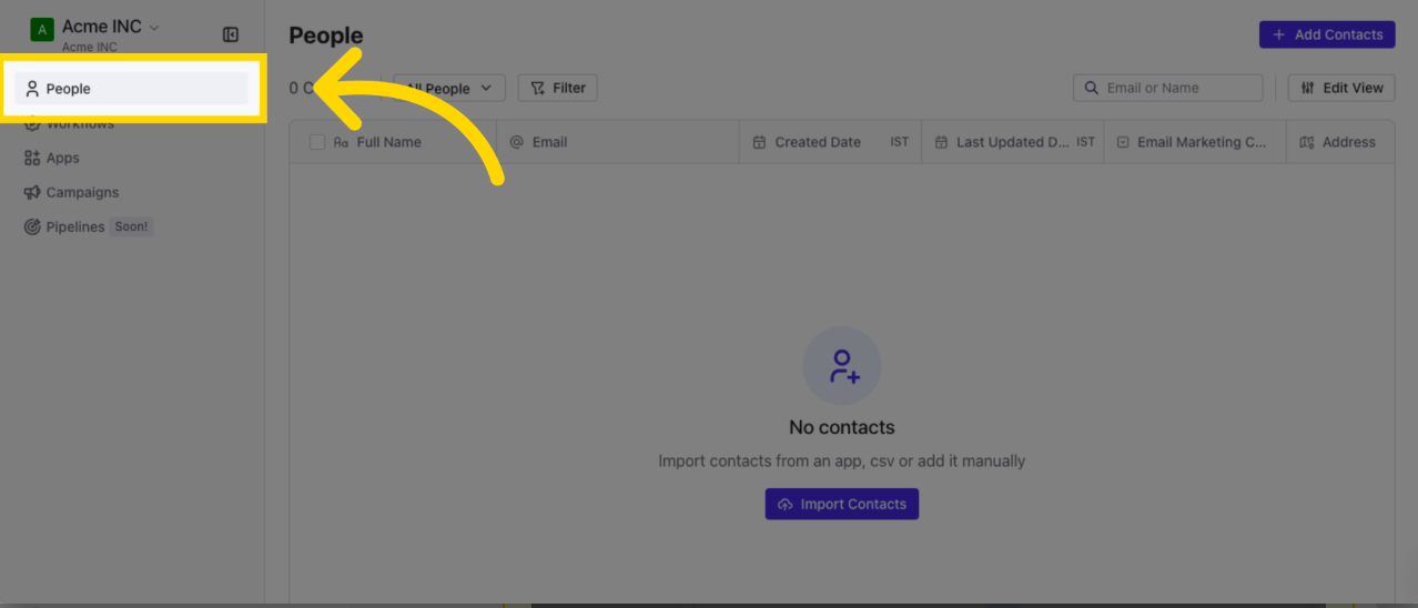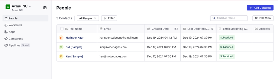 1. ไปที่ส่วน People ในแดชบอร์ด SwipeOne ของคุณเพื่อเข้าถึงรายชื่อผู้ติดต่อของคุณ
