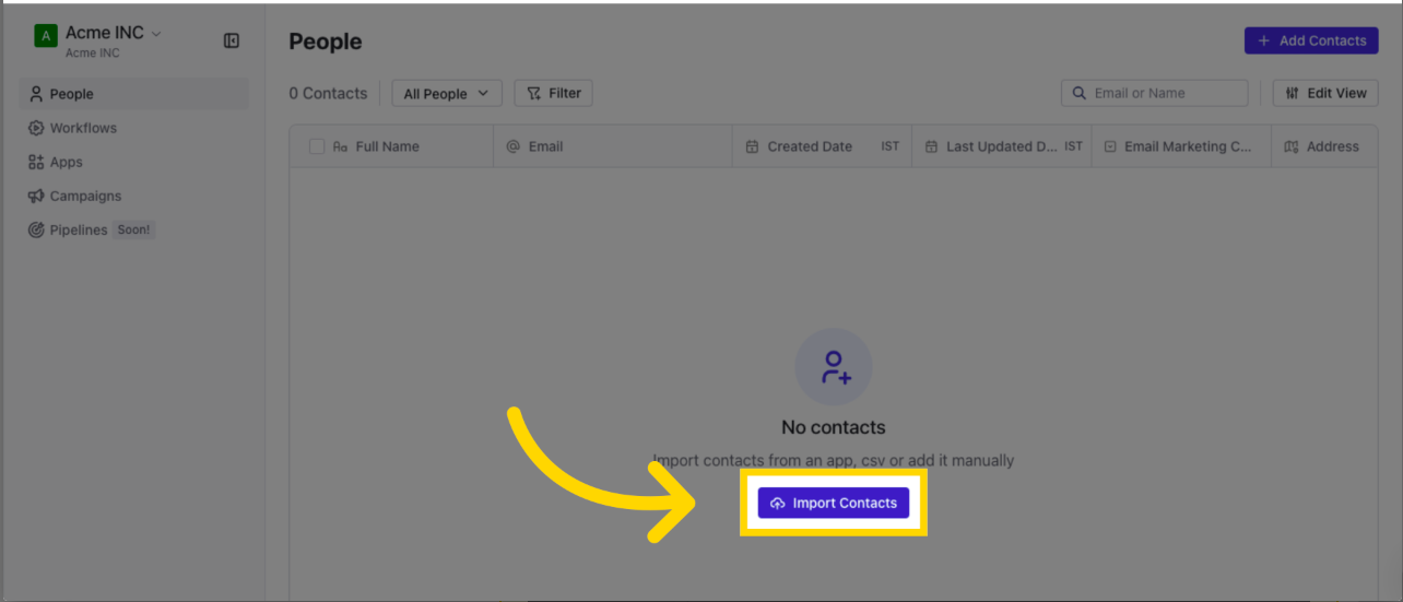 2. เริ่มกระบวนการนำเข้า contact โดยคลิกที่ปุ่ม Import Contacts