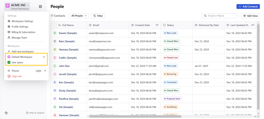 1. คุณสามารถสลับจาก workspace หนึ่งไปยังอีก workspace หนึ่งโดยเลือก workspace ที่ต้องการจากเมนูแบบเลื่อนลง
