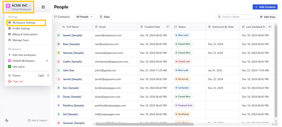 2. หากต้องการกำหนดค่า/แก้ไขการตั้งค่า workspace ให้คลิกที่ Workspace Logo -> Workspace Settings